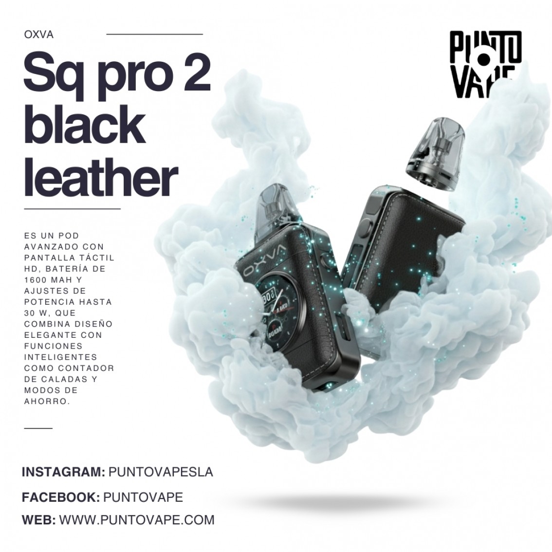 El Oxva Xlim SQ Pro 2 es un pod moderno que combina diseño compacto con tecnología avanzada, pensado para quienes buscan comodidad sin perder prestaciones de alto nivel. Su estructura cuadrada, ligera y ergonómica ofrece un agarre sólido y cómodo, con acabados premium que le dan un aspecto elegante y resistente. Incorpora una pantalla a color brillante que permite visualizar en tiempo real los niveles de potencia, la batería y el novedoso Intelligent Puff Diary, un sistema que registra y muestra el historial de caladas para que el usuario tenga control total sobre su consumo y estilo de vapeo.